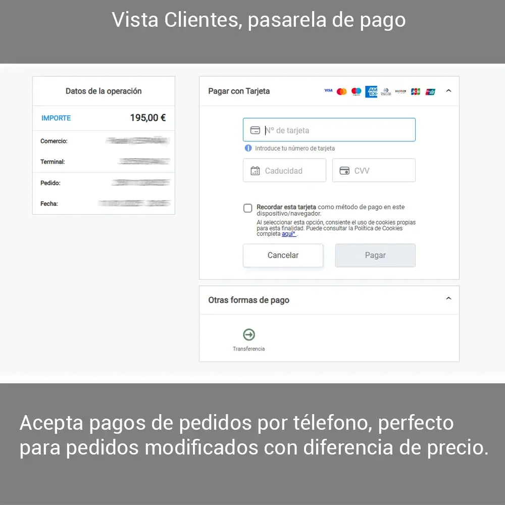 Pasarela de pago TPV, recibe pagos sin necesidad de realizar pedido, facilita a tus clientes poder realizar un pago accediendo a un enlace poder pagar parte de un pedido, un pedido realizado por teléfono o cualquier operación.